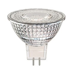 Kirkas MR16-kohdekupuinen led-lamppu 12V 6,2W, värilämpötila kirkas valkoinen 4000K, GU5.3-kanta, 430lm 840cd 36°, polttoikä n. 15000h, koko ø 50 x 45 mm, kupu lasia, blisterpakkaus. Taajuus ~50/60Hz. Toimintalämpötila-alue -30 … +40 °C. Hyvä värintoistoindeksi CRI > 80. Jatkuva tasainen spektri, ei värivääristymiä. Ei UV- tai IR-säteilyä. Ei sisällä elohopeaa. Kolmen vuoden takuu.