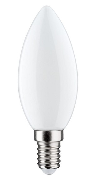 Opaali kynttiläkupuinen led-lamppu 6,5W, laaja 360° valonjako, värilämpötila kirkas valkoinen 4000K, E14-kanta, 806lm, polttoikä n. 15000h, koko ø 35 x 97 mm, pahvipakkaus. Taajuus ~50/60Hz. Toimintalämpötila-alue -30 … +40 °C. Hyvä värintoistoindeksi CRI > 80. Jatkuva tasainen spektri, ei värivääristymiä. Ei UV- tai IR-säteilyä. Ei sisällä elohopeaa. Kolmen vuoden takuu.