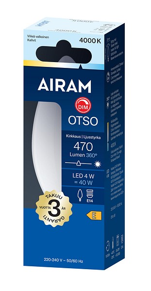 | LED C35 840 470lm E14 360 OTSO OP | Airam Otso opaali kynttiläkupu E14 360 4000K 470lm |