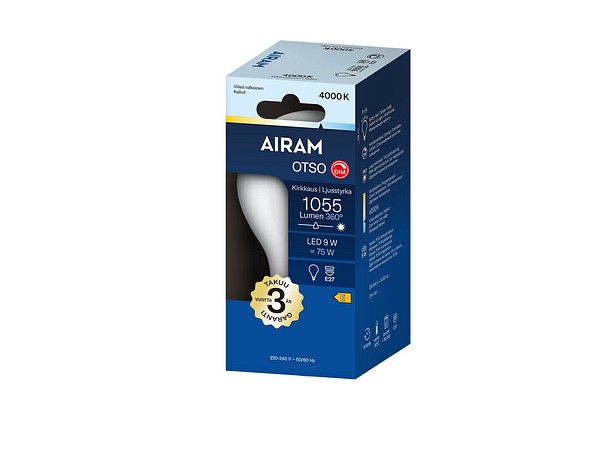| LED A60 840 1055lm E27 360 OTSO OP | Airam Otso opaali vakiokupu E27 360 4000K 1055lm |