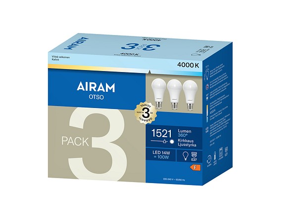 | LED A60 840 1521lm E27 OP 3BX | Airam Otso opaali vakiokupu E27 4000K 1521lm 3kpl |