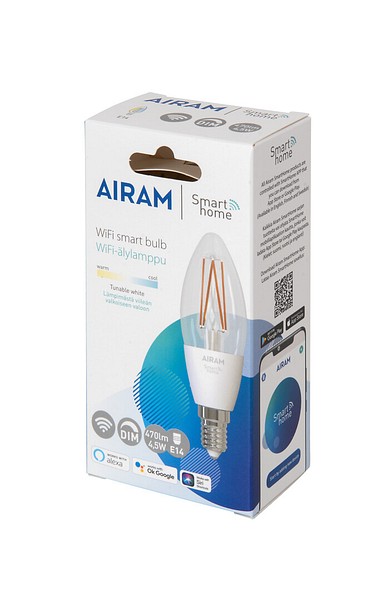 Airam SmartHome kirkas kynttiläkupu CCT WiFi E14 2700-6500K 470lm