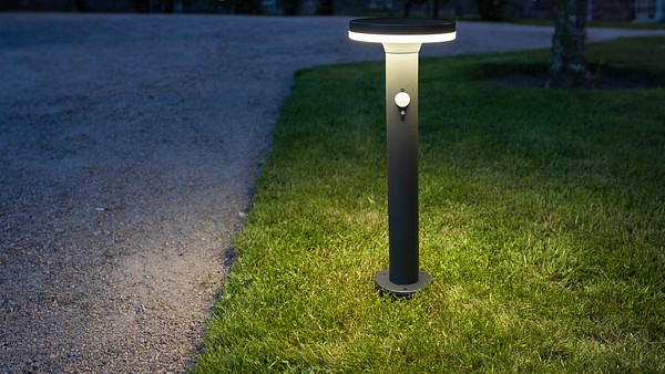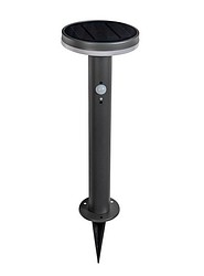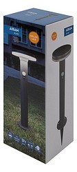 Aurinkokenno-valaisin hämäräkytkimellä ja liiketunnistimella. Kolme eri valaistusasetusta. Valitse sopivin painamalla on/off-kytkimestä 1-3 s ajan. Valoteho 75 lm - 400 lm - 600 lm. Led 40 kpl kirkas 4000 K, ei vaihdettava. Materiaali ruostumaton teräs, sävy harmaa. Kiinnitä tukevaan alustaan mukana olevilla ruuveilla tai käytä maajalkaa. Pollarin korkeus 45 cm. 1 kpl Li-ion 18650 2200 mAh 3,7 V.