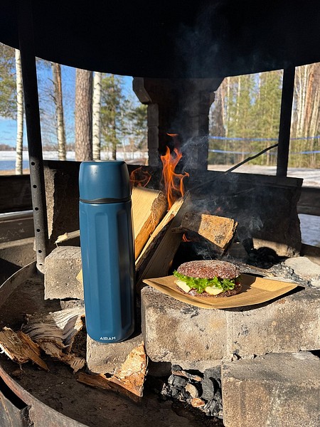 Laadukas, erinomaisen lämmönpitävyyden omaava terästermos, jossa lämmöneristys perustuu kahden teräksisen seinämän väliin muodostettuun tyhjiöön. Termos on valmistettu SUS 304 -teräksestä, joka täyttää Euroopan elintarviketurvallisuusvaatimukset. Pakkaus sisältää kaksi korkkia. Toinen korkeista takaa parhaan lämmönpitävyyden, kun juoman halutaan säilyvän reissussa pitkän aikaa joko todella kuumana tai kylmänä. Pikakorkki taas on näppärimmillään tavallisessa arkikäytössä. Ei särkyviä lasiosia. Kaksi värivaihtoehtoa: tumman sininen tai tumman punainen.