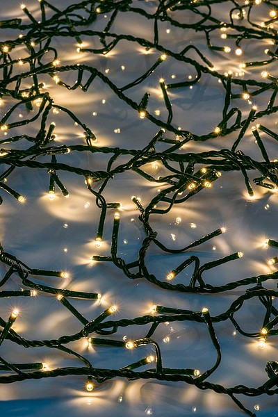 Ulkokäyttöön sopiva 7,6 m pituinen led-sarja tummalla johdolla. Led 380 kpl lämmin keltainen, ei vaihdettava, kytketty 10 ledin sarjaan, paloikä n. 10 000 h. Muuntaja 31 V 3,6 W IP44.