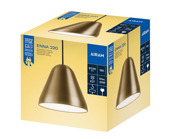 Enna 220 on moneen sisustustyyliin sopiva valaisin, joka luo tilaan pehmeää ja tunnelmallista valoa. Messingin sävyinen metallivarjostin, Ø 220 mm. Musta tekstiilijohto, pituus 2 m. Soveltuu E27-kantaiselle lampulle (maks. 20 W led), ei sisälly pakkaukseen. Kokeile SmartHome-lamppuja, joita säädät monipuolisesti sovelluksella.