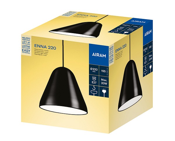 Enna 220 on moneen sisustustyyliin sopiva valaisin, joka luo tilaan pehmeää ja tunnelmallista valoa. Musta metallivarjostin, Ø 220 mm. Musta tekstiilijohto, pituus 1,5 m. Soveltuu E27-kantaiselle lampulle (maks. 20 W led), ei sisälly pakkaukseen. Kokeile SmartHome-lamppuja, joita säädät monipuolisesti sovelluksella.