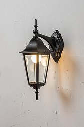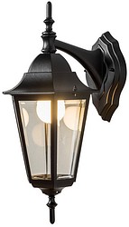 Perinteiseen pientalomiljööseen sopiva Kartano Down -seinävalaisin, jossa valonlähde suuntaa alaspäin. IP44. Musta alumiinirunko, fasettihiotut lasit ja posliininen lampunpidin. Led-lamppu maks. 11 W A60 E27, ei sisälly pakkaukseen.