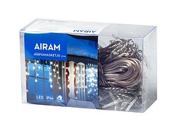 2,5 m levyinen led-jääpuikkosarja, josta roikkuu 25 kpl 25-55 cm pituisia led-ketjuja. Led 100 kpl lämmin valkoinen, ei vaihdettava, kytketty 10 ledin sarjaan. Johto kirkas. Mukana 10 kpl nippusiteitä. Sisä- ja ulkokäyttöön. Muuntaja 31 V 3,6 VA IP44.
