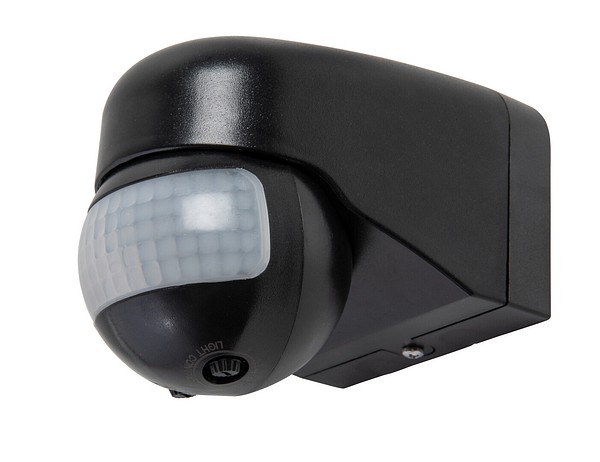 Liiketunnistin sisä- ja ulkokäyttöön, väri musta. Kotelointiluokka IP44. Kytkentä ja hämäryystaso helposti asetettavissa. Valon säätöalue: < 10 lx - 2000 lx. Asennus seinäpintaan. Tunnistuskulma 180° / n. 10 m. Tunnistusaika säädettävissä. Liiketunnistimen kytkentäteho 1200 W. Virtalähde: 110-240 VAC, 50 Hz / 60 Hz.
