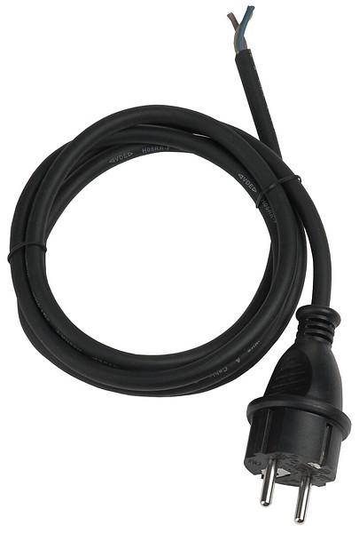 1,5 m mittainen liitäntäjohto pistotulpalla. Taipuisa kumikaapeli, väri musta. Sisä- ja ulkokäyttöön, IP44. H05RR-F 3X1,0MM². Eri tarpeisiin ja eri laitteille.