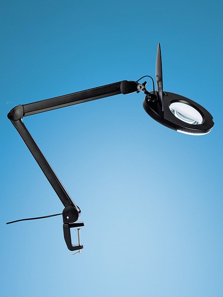 Loop XL, isokokoinen suurennuslasivalaisin tarkkuutta vaativiin töihin. Tehokas 5" 3D-lasilinssi, jossa 1,75x suurennusteho. Linssin suojana läppäkansi. Ruuvikiinnitys pöydän tai tason reunaan. Nivelletty varsi. Runko metallia ja muovia, väri musta. Led kiinteä 8 W 650 lm 6500 K. Pistotulppaliitäntä, johto 1,5 m.