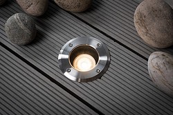 Kotikäyttöön terassien, sisäänkäyntien ja sisätilojen valaisuun Uppoasennettava valaisin, jota ei voi uppoasentaa maahan. Kestää päältä kävelyä. IP67. Runko ja koristerengas ruostumatonta terästä / muovia. Kirkas lasikupu. Vaihdettava GU10-kantainen valonlähde, ei sisälly pakkaukseen.