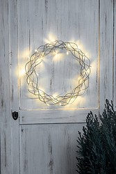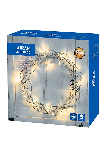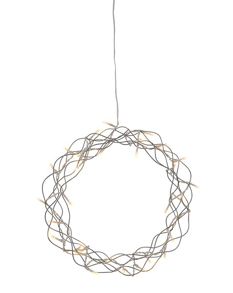 Klassinen hopeansävyinen led-valokranssi, Ø 30 cm. Led 30 kpl lämmin valkoinen, ei vaihdettava, paloikä n. 10 000 h. Muuntaja 3 V 0,9 W. Liitosjohto 5 m, kirkas.