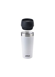 Airam Mugi-termosmukin tyylikkään yksinkertainen muotoilu ja monta funktionaalista yksityiskohtaa takaavat, että tätä termosmukia on kiva pitää mukana. Pikakorkki mukin kannessa toimii painonapilla. Juoma ei valu laukkuun eikä reppuun, kun pikakorkki ja tiivisteellä varustettu kierrekansi suljetaan oikein. Teräksen mattamusta tai mattavalkoinen pinnoite hylkii tahroja. Terästermosmukin pohja on päällystetty liukumista estävällä materiaalilla. Mugi on aito Airam-terästermos, joka pitää kuuman kuumana ja kylmän kylmänä.