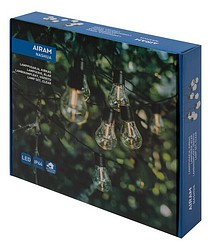 Kirkaskupuinen lamppusarja sisä- ja ulkokäyttöön. Led 10 kpl lämmin valkoinen, ei vaihdettava, paloikä n. 10 000 h. Valo-osuuden pituus 4,05 m. Muuntaja 30 V 2 W IP44.