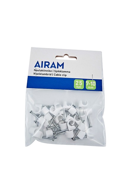 7-10 mm naulakiinnike 25 kpl pussissa. Kiinnitä johdot siististi ohutnaulaisella kiinnikkeellä. Valmistettu Euroopassa.