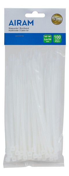 150 mm pituinen nippuside 100 kpl pussissa. Väri valkoinen. Sopii moniin eri olosuhteisiin ja käyttökohteisiin sähköasennuksissa ja kodin askareissa.