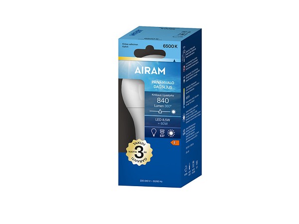| LED A60 865 840lm E27 DAYLIGHT OP | Airam opaali vakiokupu päivänvalo E27 6500K 840lm |