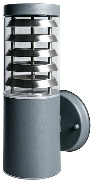 Tyylikäs Park-seinävalaisin sopii pohjoismaiseen pientalomiljööseen. Pinta-asennettava. Ilmeikkäät teräksiset lamellit ehkäisevät häikäisyä. Harmaa teräsrunko, kupu polykarbonaattia. Led-lamppu maks. 10,5 W A60 E27 ei sisälly pakkaukseen. IP44. Ei ketjutettavissa.