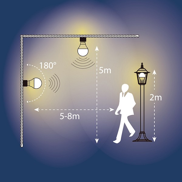 Hyvissä olosuhteissa lamput reagoivat liikkeesen 5–8 metrin etäisyydeltä ja jopa 5 metrin korkeudesta.