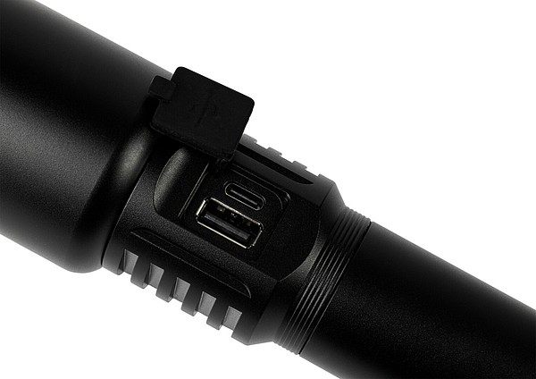 USB-ladattava taskulamppu 2000 lm valoteholla. Toiminnot: kirkas, keskitaso, himmeä, vilkku, SOS Valoteho: kirkas: 2000 lm | keskitaso: 1000 lm | himmeä: 500 lm. Toiminta-aika: kirkas: 3 h, keskitaso: 5 h, himmeä: 6 h, vilkku: 3 h, SOS: 6 h. Zoom-toiminto. Koko ja paino: 189 x 48 x 33 mm, 369 g. Akku: 2600 mAh Li-ion, USB-C-lataus.