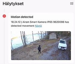 Liiketunnistin (PIR) ja AI ihmishahmon tunnistin.