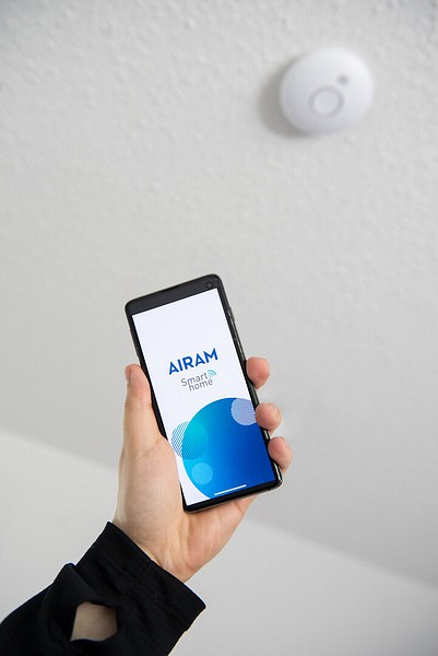Langaton Airam SmartHome palovaroitin toimii normaalin optisen palovaroittimen tavoin, myös ilman SmartHome sovellusta. Savua havaitessaan palovaroitin hälyttää kovaäänisesti. Jos laite on lisätty Airam SmartHome -sovellukseen, saat ilmoituksen hälytyksestä myös puhelimeesi. Tilanteessa, jossa kodissa on savua esim. ruuan käristämisestä johtuen, palovaroittimen voi hiljentää varoittimessa olevasta painikkeesta. Palovaroitinta ei voi hiljentää sovelluksen kautta. Palovaroitin tulisi asentaa mahdollisimman keskelle huoneen kattoa, jokaiseen kodin tilaan, makuuhuoneeseen, poistumisreiteille ja portaikkoihin. SmartHome palovaroittimia ei voi ketjuttaa keskenään.