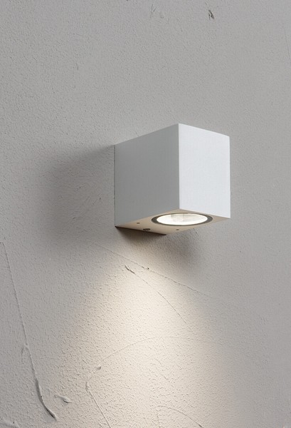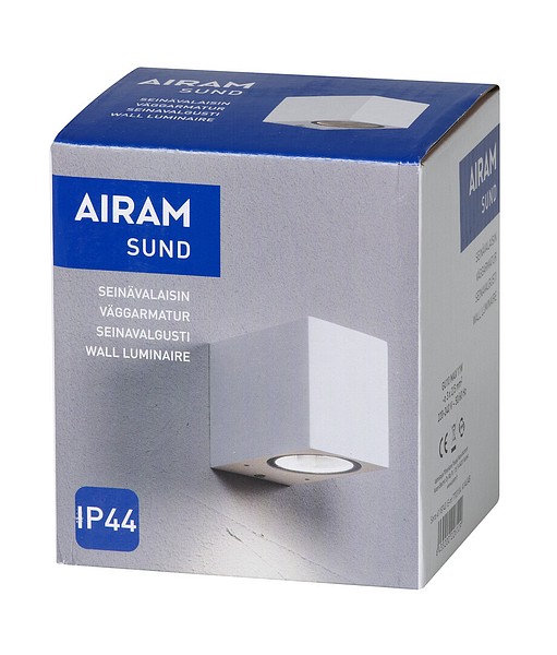 Sund-seinävalaisin valaisee alaspäin. Siron muotokielen ansiosta se sopii moneen tilaan sekä sisällä että ulkona. IP44. Led-lamppu maks. 7 W GU10, ei sisälly pakkaukseen. Valkoinen alumiinirunko, kupu karkaistua lasia. Ei ketjutettavissa.