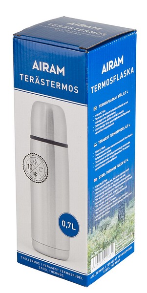 Airam-terästermoksissa lämmöneristys perustuu kahden teräksisen seinämän väliin muodostettuun tyhjiöön. Ruostumattomat termokset on valmistettu laadukkaasta SUS 304 -teräksestä, joka täyttää Euroopan elintarviketurvallisuusvaatimukset. Pikakorkki helpottaa käyttöä. Ei särkyviä lasiosia.