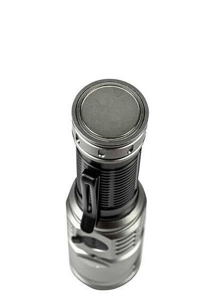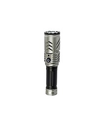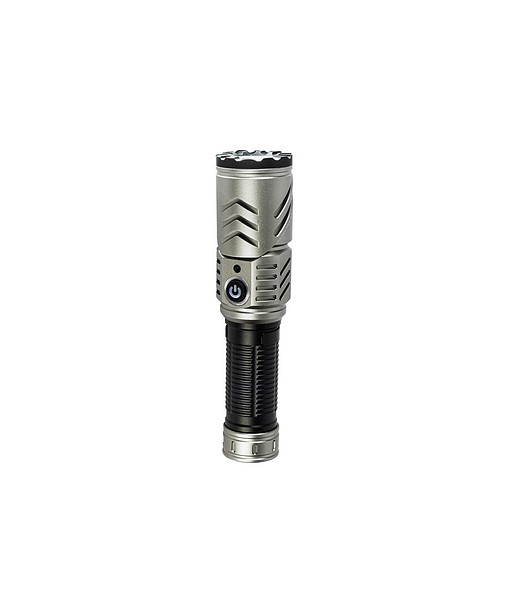 Tehokas taskulamppu, jonka pää kääntyy 90° sivulle. Turboasetuksella jopa 2500 lm! Valonlähde: 3 x 10 W led. Syöttö: 5V, 1A, 1 kpl 3,7V 2600 mAh 20650 akku. USB-C-lataus. Toimintatilat: kirkas 1500 lm (käyttöaika 4 h) – himmeä 500 lm (käyttöaika 12 h) – vilkku – SOS, pitkä painallus: Turbotila (30 sek) 2500 lm. Materiaali: Alumiini. Koko: 149 x 36 mm (halkaisija), paino: 220,5 g.