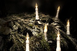 Ulkokäyttöön soveltuva kuusenkynttiläsarja, 16 tai 30 kynttilää. Led lämmin valkoinen, ei vaihdettava, rinnankytketty. Materiaali muovi ja metalli. Johto tumma.