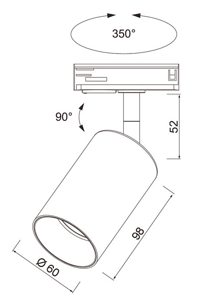 Beam Pro 1-P is equipped with a single-phase lighting track adapter. The luminaire can be mounted on Global Base 1 tracks.