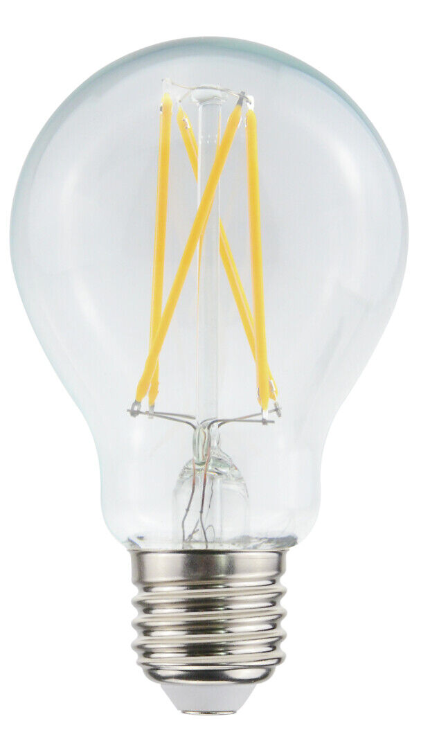 Filament lamps are suitable for replacing clear incandescent bulbs and halogen lamps. The lamps emit plenty of light towards the base. This is very important for luminaires on which the base of the lamp points downward. The lamps emit warm yellow (2200 K) light and, when combined with the elegant cord, look impressive even without a lampshade. Models that are dimmable with LED dimmers can be recognised by the DIM symbol on the package. The eco-friendly cardboard packages are colour-coded. The colour indicates the corresponding incandescent bulb, making the choice simpler for the consumer. Technical specifications are also clearly presented.