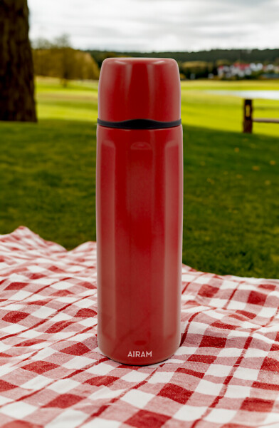 Laadukas, erinomaisen lämmönpitävyyden omaava terästermos, jossa lämmöneristys perustuu kahden teräksisen seinämän väliin muodostettuun tyhjiöön. Termos on valmistettu SUS 304 -teräksestä, joka täyttää Euroopan elintarviketurvallisuusvaatimukset. Pakkaus sisältää kaksi korkkia. Toinen korkeista takaa parhaan lämmönpitävyyden, kun juoman halutaan säilyvän reissussa pitkän aikaa joko todella kuumana tai kylmänä. Pikakorkki taas on näppärimmillään tavallisessa arkikäytössä. Ei särkyviä lasiosia. Kaksi värivaihtoehtoa: tumman sininen tai tumman punainen.